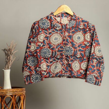 Hand Block Print Cotton Shirt for Women ? Red Floral Printed Button-Down Top with Full Sleeves