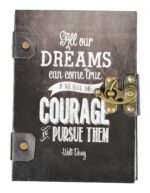 vintage handmade leather journal. Crafted with genuine leather, it radiates authenticity and charm, perfect for those who appreciate classic craftsmanship. The premium antique lock closure adds a touch of elegance and security, ensuring your thoughts and memories are safeguarded within its pages. Inside, you’ll discover 200 brown handmade pages, providing ample space for your musings, sketches, and stories to unfold. Whether it’s for journaling, sketching, or planning, this versatile journal is a timeless companion for your creative endeavors. Treat yourself or a loved one to this exquisite piece, a celebration of tradition and creativity