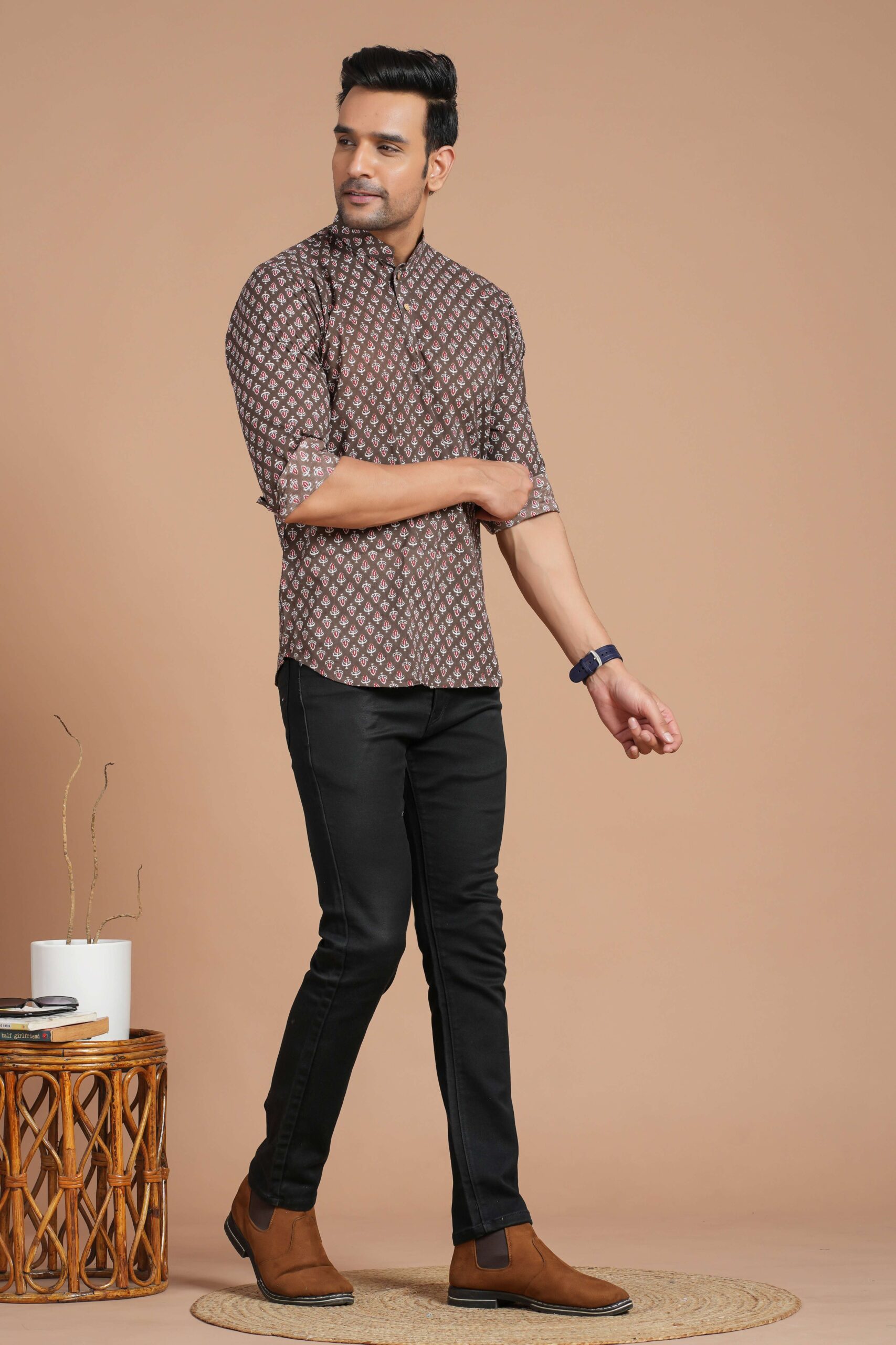 Men’s Cotton Brown Printed Kurta ? Casual & Festive Daily Wear