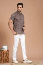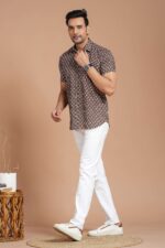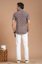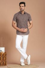 Men’s Cotton Brown Printed Short-Sleeve Shirt ? Casual & Daily Summer Wear