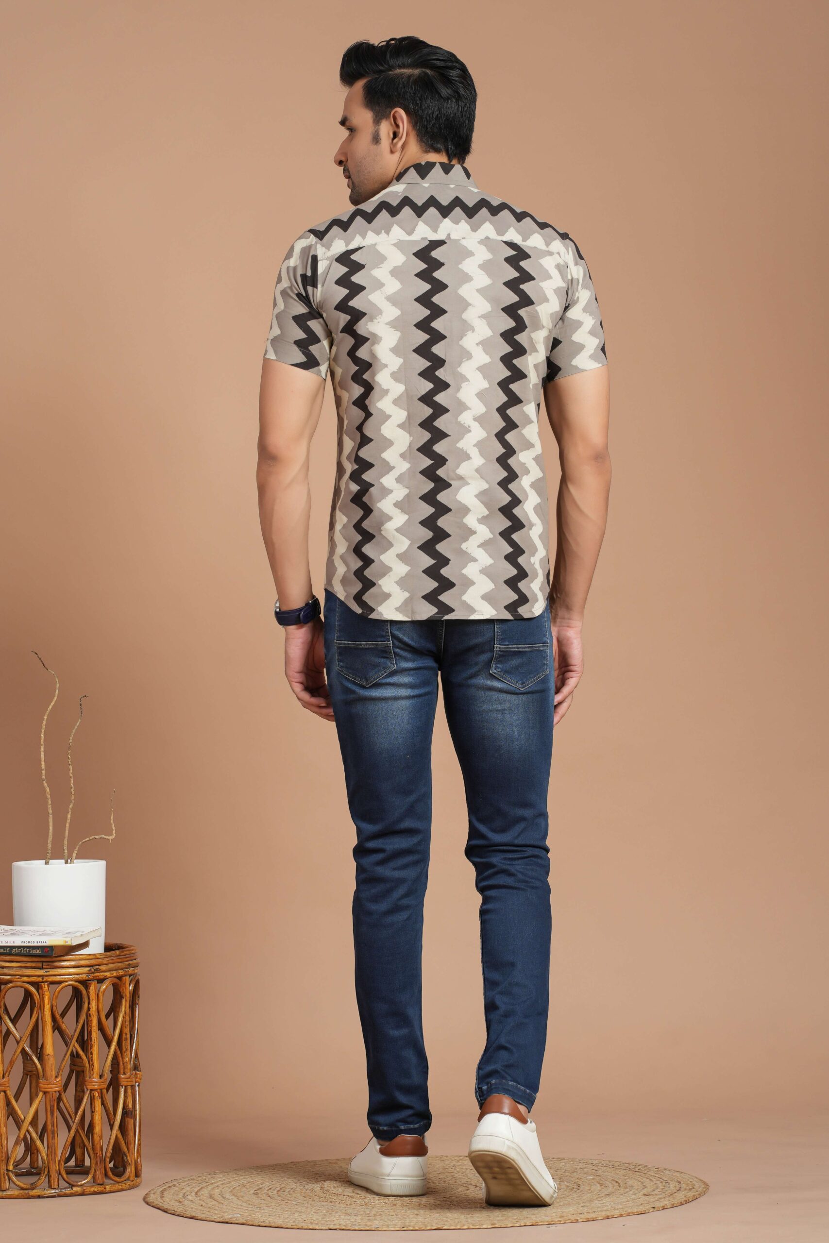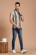 Men?s Printed Cotton Kurta ? Crafted from soft cotton with a trendy mustard zig-zag print, this kurta features a mandarin collar, buttoned placket, and roll-up sleeves. Perfect for festive occasions, casual outings, and ethnic wear. Pair with black trousers or jeans for a smart, stylish look.