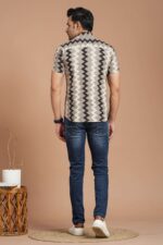 Men?s Grey & Black Zigzag Printed Cotton Short-Sleeve Shirt ? Casual Trendy Wear