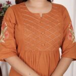 Women’s Cotton Embroidered Anarkali Kurti With Pant (Yellow)