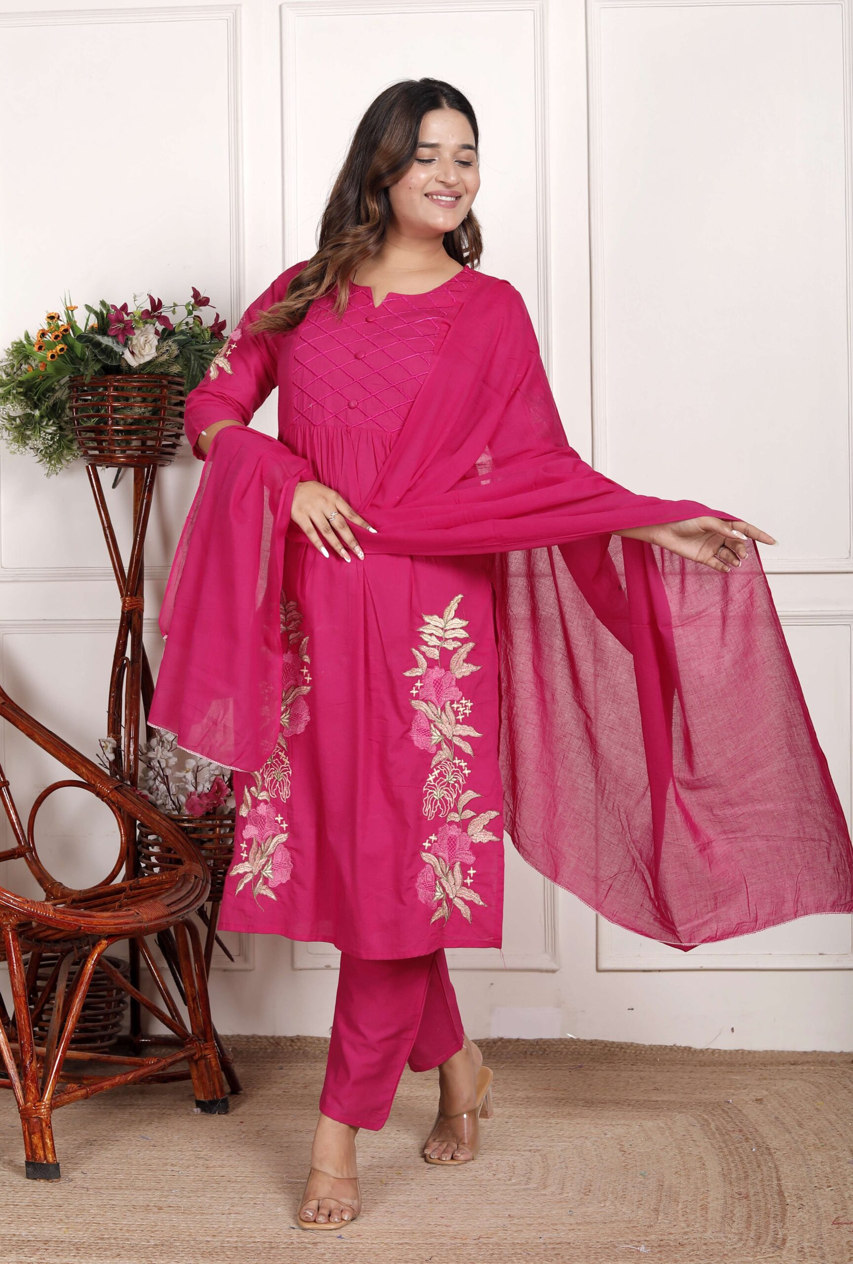 Elegant Cotton 60×60 Kurti Set with Pant & Dupatta ? crafted from breathable premium cotton for all-day comfort. Perfect ethnic wear for office, parties, festivals & daily use.