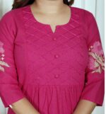 Women’s Cotton Embroidered Anarkali Kurti With Pant (Maroon)